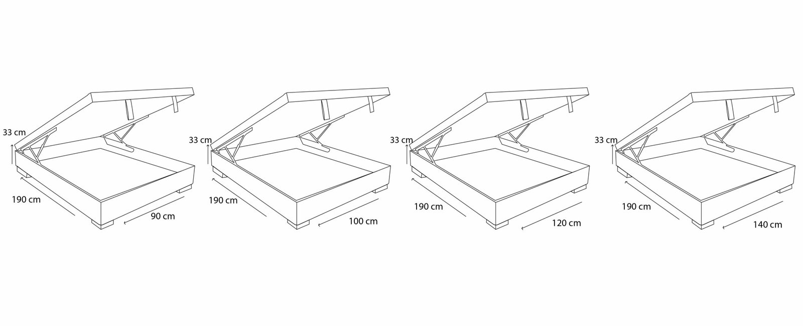 Dentro de nuestros estilos manejamos: base camas tradicional, tipo baúl, dividida, con cajones de 2 y hasta 4, hidráulicas, con aperturas horizontales entre otras opciones.