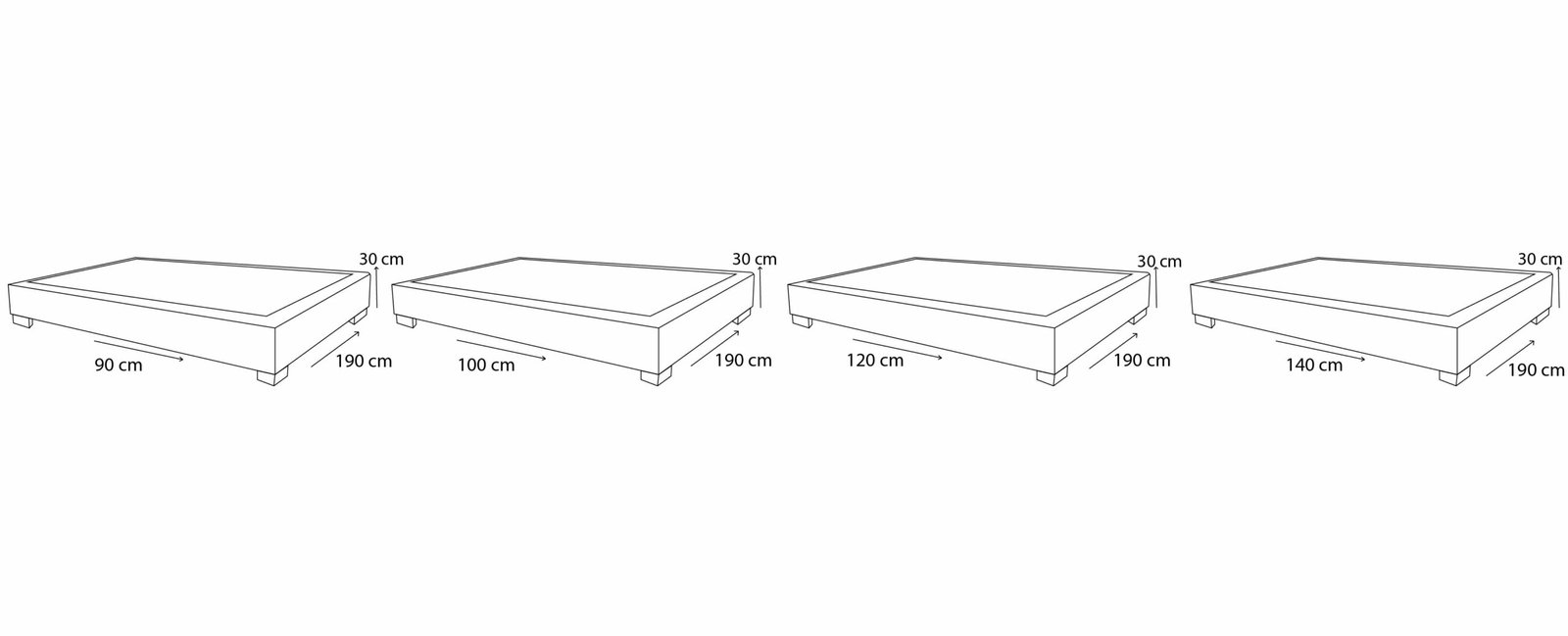 Dentro de nuestros estilos manejamos: base camas tradicional, tipo baúl, dividida, con cajones de 2 y hasta 4, hidráulicas, con aperturas horizontales entre otras opciones.