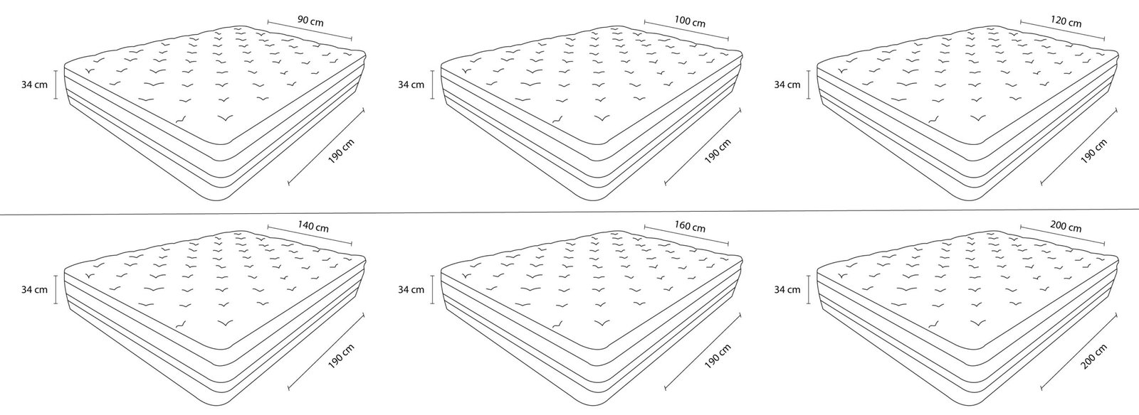 Las estructuras tienen unidades resortadas tipo Bonell, y fibras de celdas abiertas que se adaptan de forma ergonómica al contorno y peso del cuerpo.